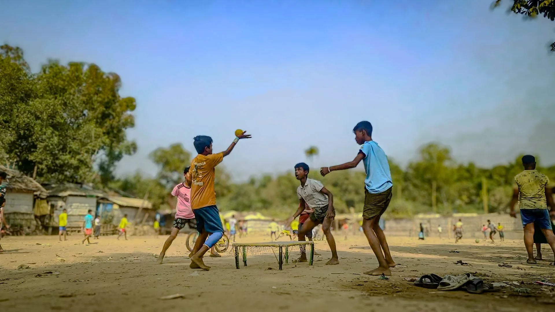 Our work with boys and young men begins with the fundamentals: building physical capacity through structured, progressive training. In the dense, crowded camps, space is limited—so we focus on sports like volleyball, spikeball, and the local game of chalong, which thrive in smaller environments.